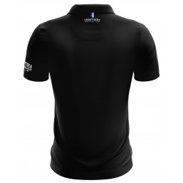 Druck auf Brust, Arm und Rücken, sowie Blau-Weißer Applikation auf dem Rücken.